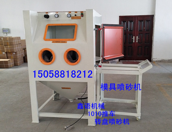 模具噴砂機 陶瓷噴砂機 1010推車轉盤噴砂機 箱體手動噴砂機,1010箱體噴砂機適合噴偏中大型的產品,可訂做帶推車轉盤,方便省力對于噴比較重的產品,歡迎來電咨詢!15058818212